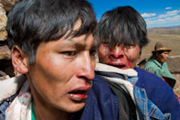 At the sound of Julas-Jula (war songs played on traditional Andean panpipes), the day of Tinku begins and the communal troop makes the long journey to the colonial town, ready for the battles ahead.� Their goal, however, is not to win.�Although deaths are not infrequent, the intent of battle is not destruction, but the fight to live.�And it is from these �oppositions� - these opposing forces, that blood is of the essence. For it is through the spilling of blood - �offerings to the Earth� - that fertility, bountiful harvests and prosperity are best insured.