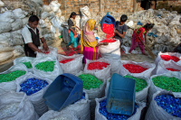 A large group of street children, everybody called �Tokai� always search for saleable and recyclable Plastic Materials in the dirt, garbage, roads, dock and pedestrian walkways. After collecting their daily stock, they sell them at some mid level shops and than these plastics transfer to the recycle places for farther processing. There are some groups of people working to separate the different colors of the bottle, cutting, washing, drying and packaging and some collect oil from destroyed bottle for themselves.